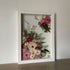 Květinový ručně vyrobený obraz s květy v červených, růžových a modrých barvách, které rostou z rohů obrazu. Mezi květy najdete růže, ostrožky, hortenzie a mnoho dalšího.