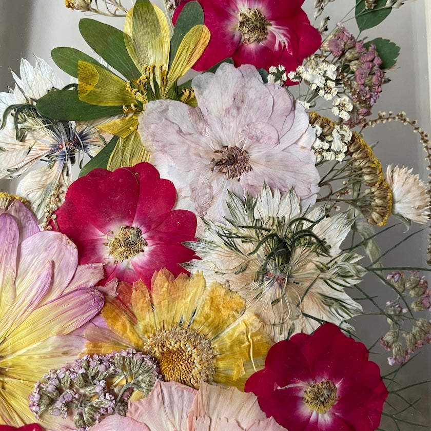 Použité květiny a rostliny jsou skutečné, ručně sbírané a šetrně lisované, aby si zachovaly svou přirozenou strukturu, jemnost i barevnost. 🌿 Následně jsou s citem aranžovány do jedinečné kompozice – každý obraz je originál, žádné dva kusy nejsou stejné.