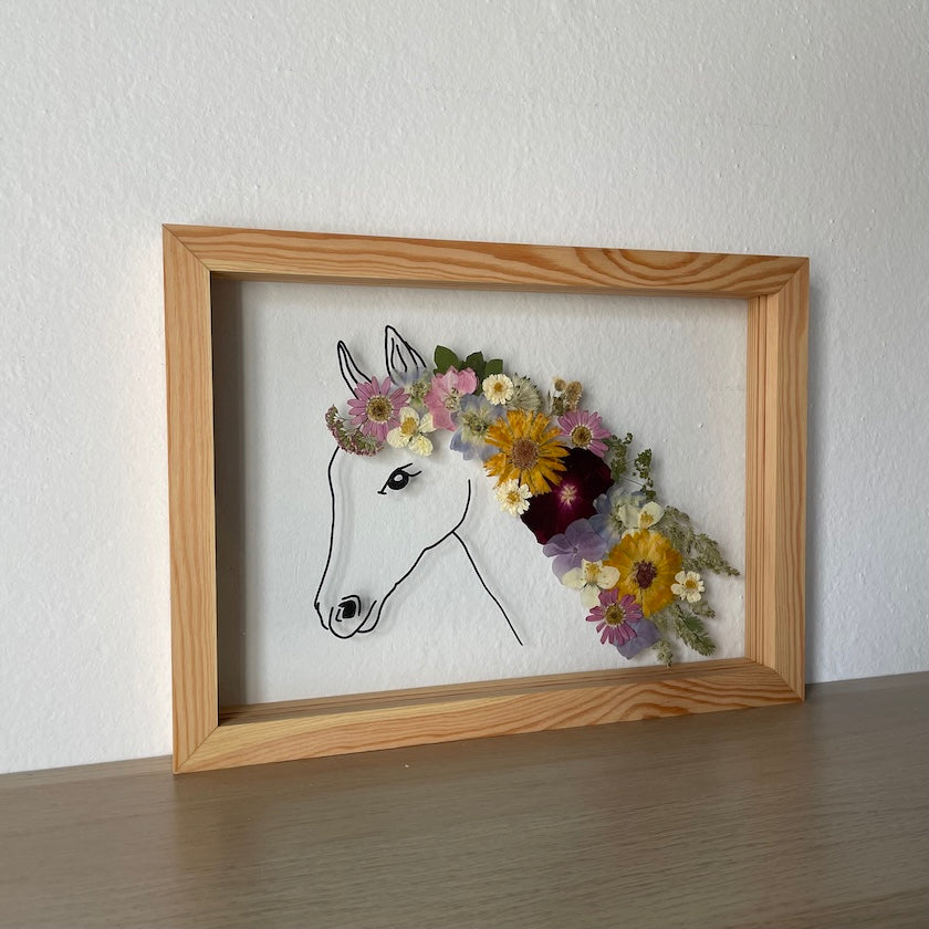 Květinový ručně vyrobený obraz s ručně nakreslenou siluetou zvířátka. Koníček z pravých květů zahřeje u srdce každého milovníka zvířecí a květinové říše. Pro malé i velké.