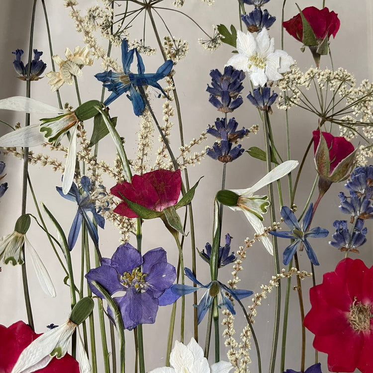 Použité květiny a rostliny jsou skutečné, ručně sbírané a šetrně lisované, aby si zachovaly svou přirozenou strukturu, jemnost i barevnost. 🌿 Následně jsou s citem aranžovány do jedinečné kompozice – každý obraz je originál, žádné dva kusy nejsou stejné.