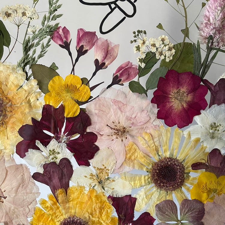 Použité květiny a rostliny jsou skutečné, ručně sbírané a šetrně lisované, aby si zachovaly svou přirozenou strukturu, jemnost i barevnost. 🌿 Následně jsou s citem aranžovány do jedinečné kompozice – každý obraz je originál, žádné dva kusy nejsou stejné.