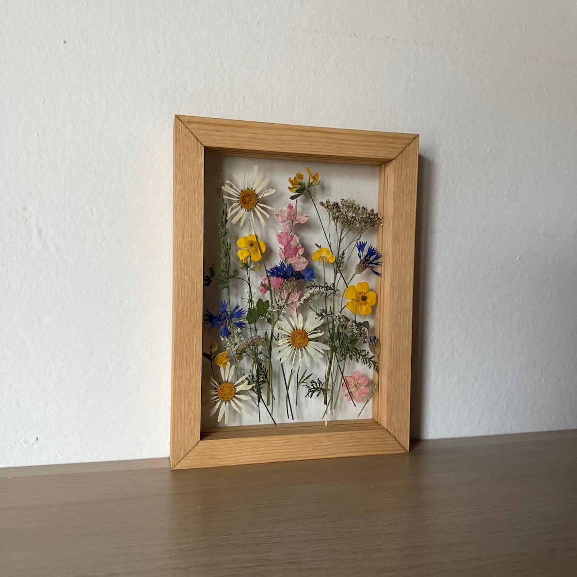 Použité květiny a rostliny jsou skutečné, ručně sbírané a šetrně lisované, aby si zachovaly svou přirozenou strukturu, jemnost i barevnost. 🌿 Následně jsou s citem aranžovány do jedinečné kompozice – každý obraz je originál, žádné dva kusy nejsou stejné.