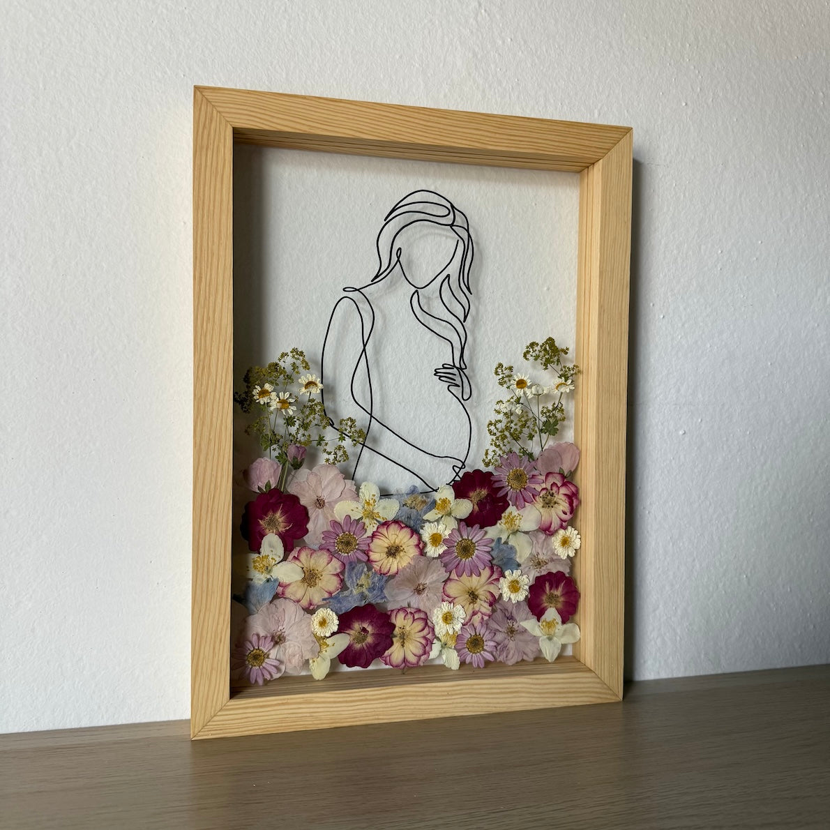Květinový ručně vyrobený obraz s originální malovanou siluetou s květy v červených, růžových a bílých barvách.
