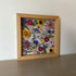 Květinový ručně vyrobený obraz s květy ve žlutých, růžových a fialových barvách, které rostou po celém obrazu. Mezi květy najdete chryzantémy, pryskyřník, krásenky a mnoho dalšího.