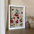 Květinový ručně vyrobený obraz s originální malovanou siluetou s květy v červených a bílých barvách.