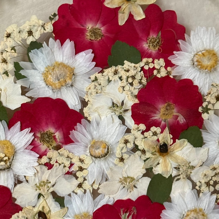 Použité květiny a rostliny jsou skutečné, ručně sbírané a šetrně lisované, aby si zachovaly svou přirozenou strukturu, jemnost i barevnost. 🌿 Následně jsou s citem aranžovány do jedinečné kompozice – každý obraz je originál, žádné dva kusy nejsou stejné.