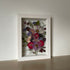 Květinový ručně vyrobený obraz s květy v červených, fialových a růžových barvách, které rostou z rohů obrazu. Mezi květy najdete růže, krásenky, hortenzie a mnoho dalšího.
