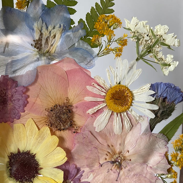 Přesně to jsou naše obrazy. Zakládáme si na originalitě a kvalitě, proto je každý náš obraz originál z pravých vylisovaných lokálních květů zarámovaných do ručně dělaných masivních dřevěných rámů.