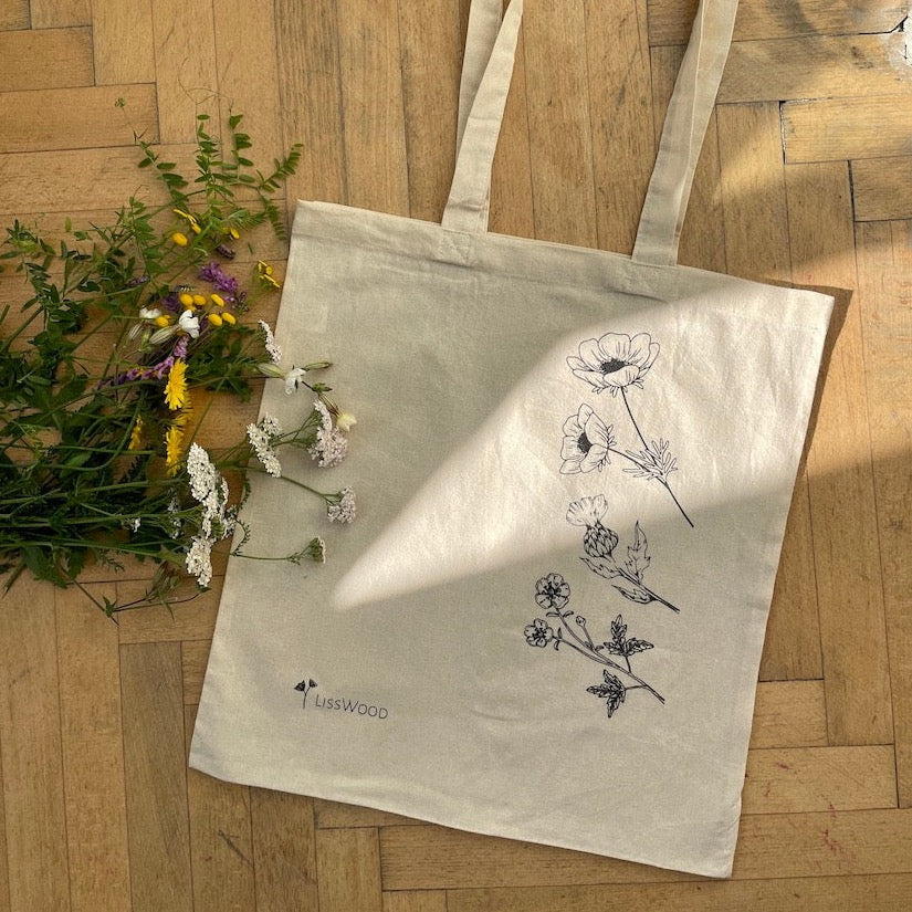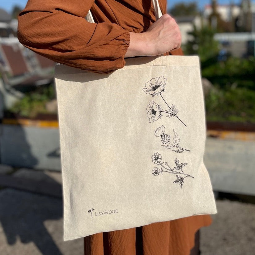 Protože květiny a rostliny milujeme, rozhodli jsme se je v našem stylu zvěčnit na plátěné tašce. Taška je čistě ze 100% bavlny a stane se nejen skvělým pomocníkem při nošení věcí, ale i designovým doplňkem.