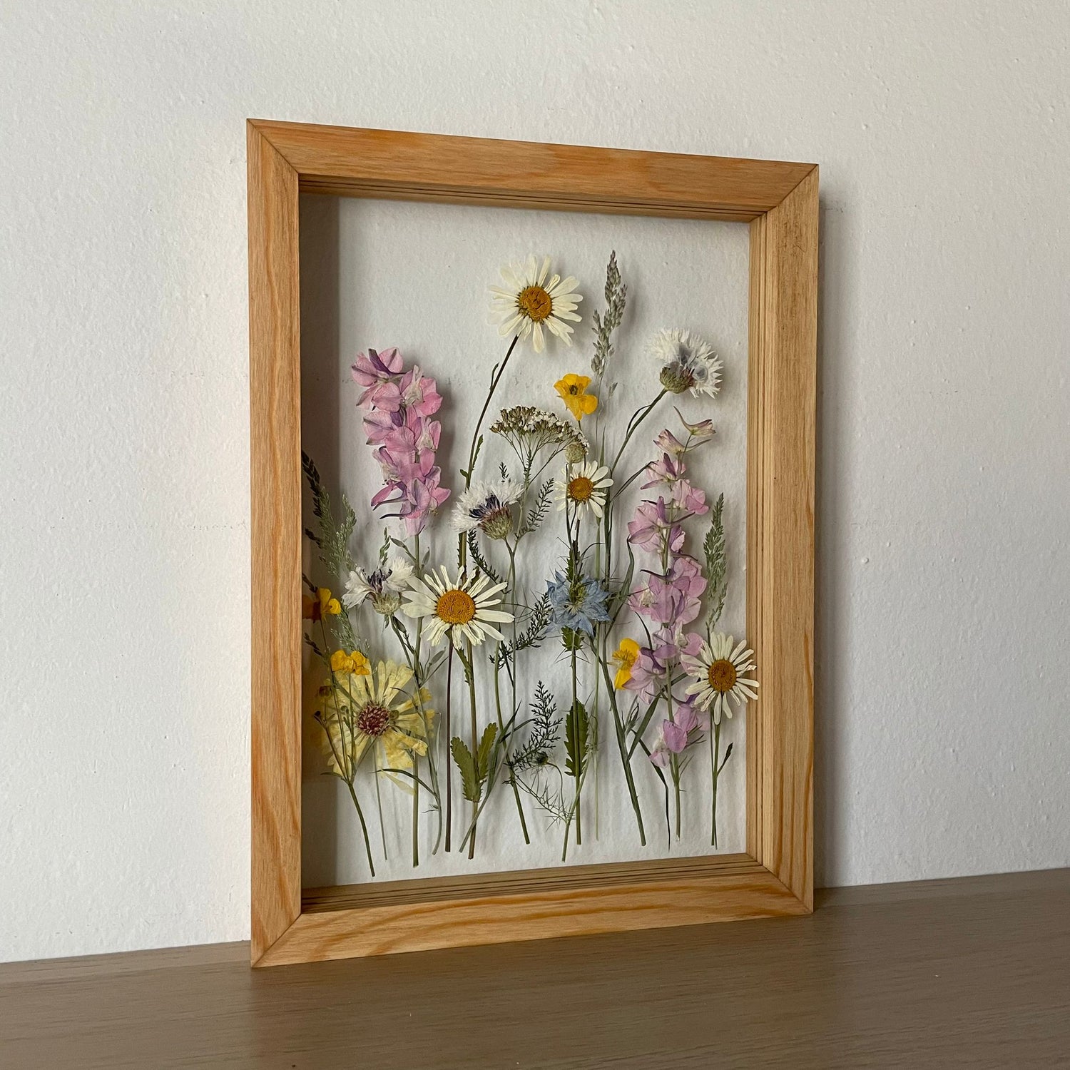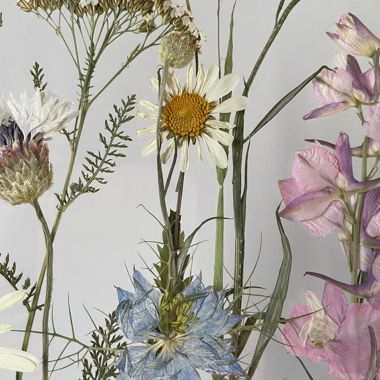 Použité květiny a rostliny jsou skutečné, ručně sbírané a šetrně lisované, aby si zachovaly svou přirozenou strukturu, jemnost i barevnost. 🌿 Následně jsou s citem aranžovány do jedinečné kompozice – každý obraz je originál, žádné dva kusy nejsou stejné.