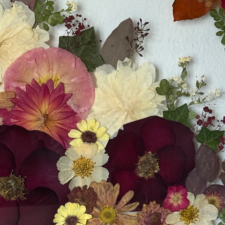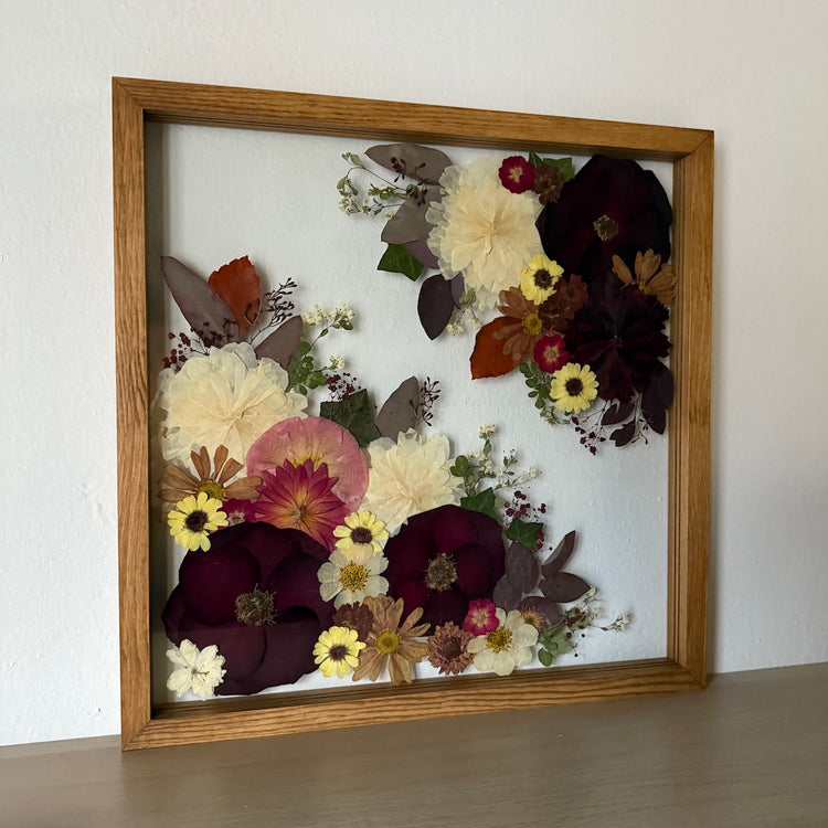 Přesně to jsou naše obrazy. Zakládáme si na originalitě a kvalitě, proto je každý náš obraz originál z pravých vylisovaných lokálních květů zarámovaných do ručně dělaných masivních dřevěných rámů.