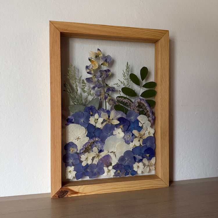 Použité květiny a rostliny jsou skutečné, ručně sbírané a šetrně lisované, aby si zachovaly svou přirozenou strukturu, jemnost i barevnost. 🌿 Následně jsou s citem aranžovány do jedinečné kompozice – každý obraz je originál, žádné dva kusy nejsou stejné.