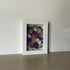 Květinový ručně vyrobený obraz s květy bílých a modrých a fialových barev, které rostou ze středu obrazu. Mezi květy najdete hortenzii, ostrožky, krásenky a další.