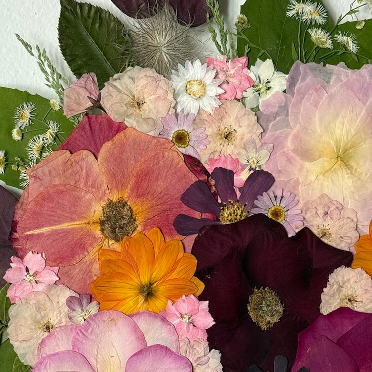 Použité květiny a rostliny jsou skutečné, ručně sbírané a šetrně lisované, aby si zachovaly svou přirozenou strukturu, jemnost i barevnost. 🌿 Následně jsou s citem aranžovány do jedinečné kompozice – každý obraz je originál, žádné dva kusy nejsou stejné.