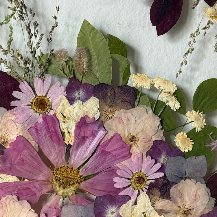 Použité květiny a rostliny jsou skutečné, ručně sbírané a šetrně lisované, aby si zachovaly svou přirozenou strukturu, jemnost i barevnost. 🌿 Následně jsou s citem aranžovány do jedinečné kompozice – každý obraz je originál, žádné dva kusy nejsou stejné.