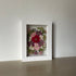 Květinový ručně vyrobený obraz s květy růžových a červených barev, které rostou ze středu obrazu. Mezi květy najdete ostrožku, květy třešní, růži a mnoho dalšího.