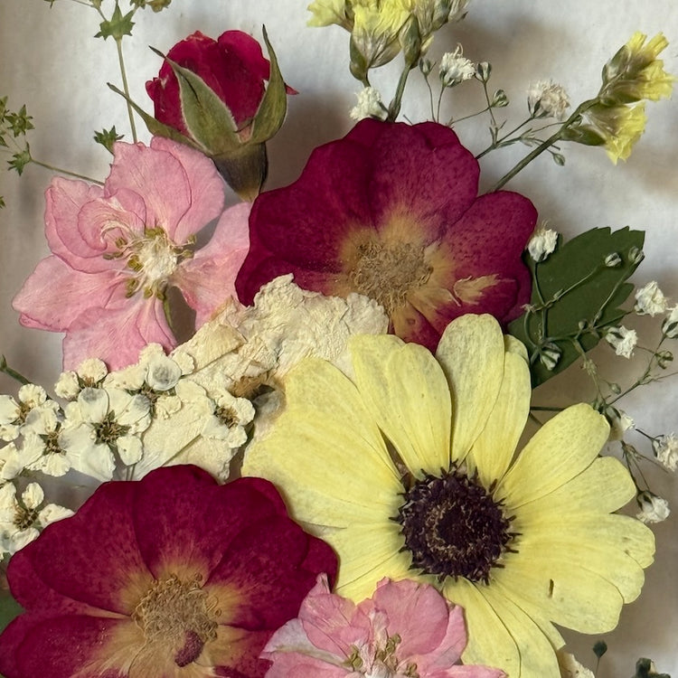 Přesně to jsou naše obrazy. Zakládáme si na originalitě a kvalitě, proto je každý náš obraz originál z pravých vylisovaných lokálních květů zarámovaných do ručně dělaných masivních dřevěných rámů.