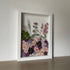 Květinový ručně vyrobený obraz s květy v růžových a fialových barvách, které rostou ze spodu obrazu. Mezi květy najdete hortenzie, květy třešní, ostrožky a mnoho dalšího.
