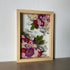 Květiny jsou zasazeny mezi skla a doplněny ručně vyráběným dřevěným rámem, který vzniká přímo v naší dílně. 🪵