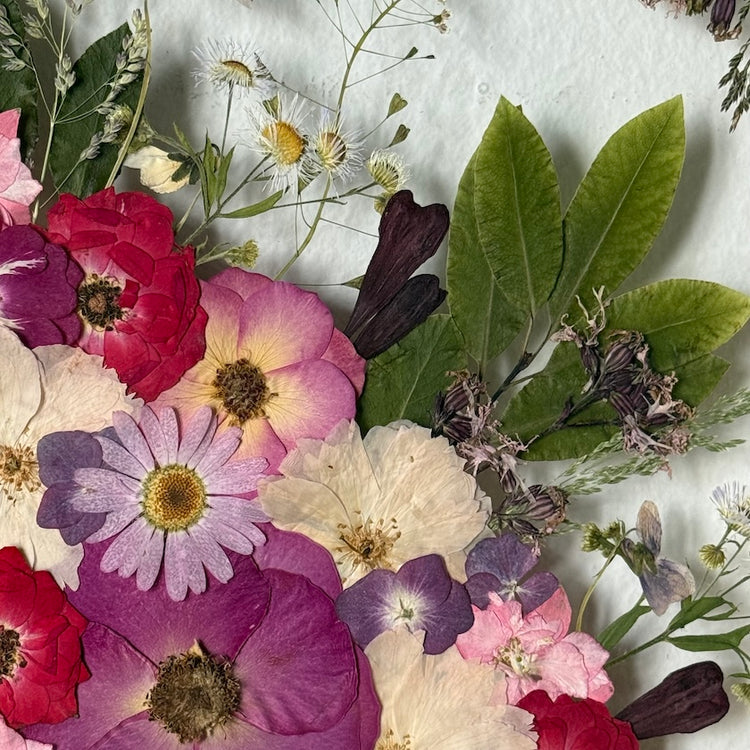 Použité květiny a rostliny jsou skutečné, ručně sbírané a šetrně lisované, aby si zachovaly svou přirozenou strukturu, jemnost i barevnost. 🌿 Následně jsou s citem aranžovány do jedinečné kompozice – každý obraz je originál, žádné dva kusy nejsou stejné.