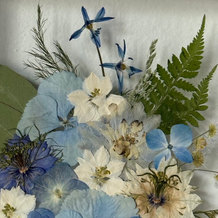 Použité květiny a rostliny jsou skutečné, ručně sbírané a šetrně lisované, aby si zachovaly svou přirozenou strukturu, jemnost i barevnost. 🌿 Následně jsou s citem aranžovány do jedinečné kompozice – každý obraz je originál, žádné dva kusy nejsou stejné.