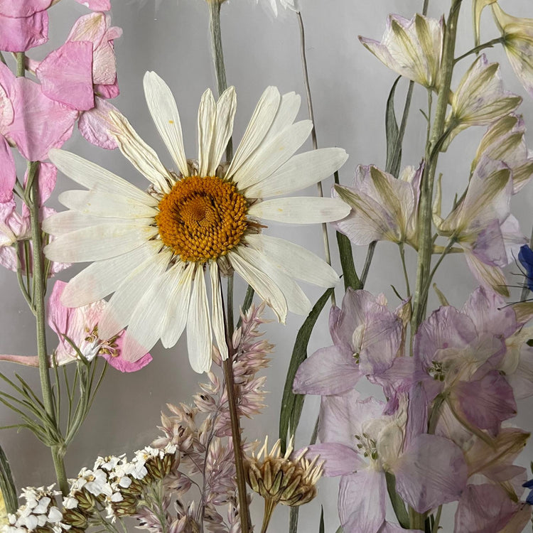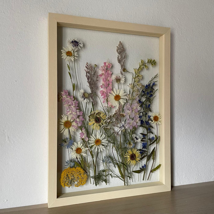 Použité květiny a rostliny jsou skutečné, ručně sbírané a šetrně lisované, aby si zachovaly svou přirozenou strukturu, jemnost i barevnost. 🌿 Následně jsou s citem aranžovány do jedinečné kompozice – každý obraz je originál, žádné dva kusy nejsou stejné.