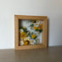 Květinový ručně vyrobený obraz s květy bílých a žlutých barviček, které rostou z rohů obrazu. Mezi květy najdete krásnoočka, měsíčky a mnoho dalšího.