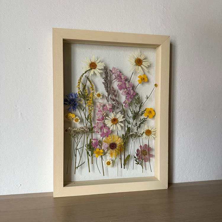 Použité květiny a rostliny jsou skutečné, ručně sbírané a šetrně lisované, aby si zachovaly svou přirozenou strukturu, jemnost i barevnost. 🌿 Následně jsou s citem aranžovány do jedinečné kompozice – každý obraz je originál, žádné dva kusy nejsou stejné.