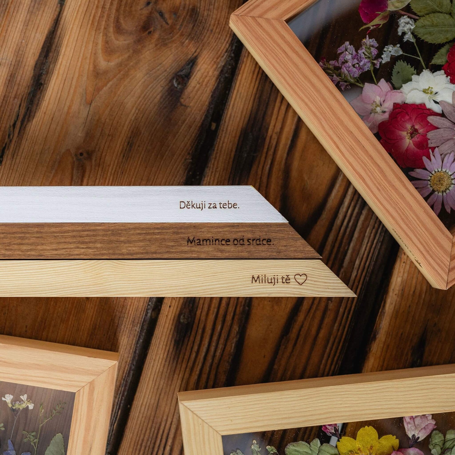 Nechte si od nás na rám obrazu vypálit text dle vašeho přání. Může to být věnování, citát nebo i vyznání lásky.