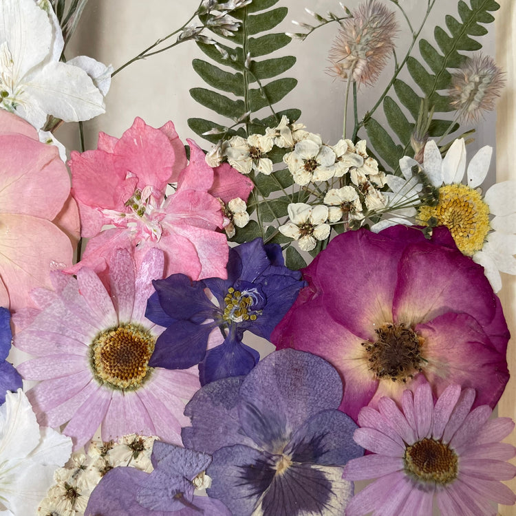 Použité květiny a rostliny jsou skutečné, ručně sbírané a šetrně lisované, aby si zachovaly svou přirozenou strukturu, jemnost i barevnost. 🌿 Následně jsou s citem aranžovány do jedinečné kompozice – každý obraz je originál, žádné dva kusy nejsou stejné.