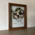 Květinový ručně vyrobený obraz s originální malovanou siluetou s květy v bílých a fialových barvách.